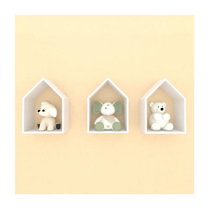 Nichos Prateleira em formato de casinha mdf Cinza Cinza