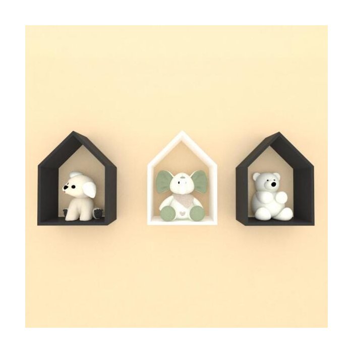 Nichos Prateleira em formato de casinha mdf preto com branco
