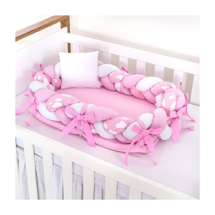 Ninho Bebê Redutor de Berço Trança Menina Rosa Trançado 3 Peças 100% Algodão