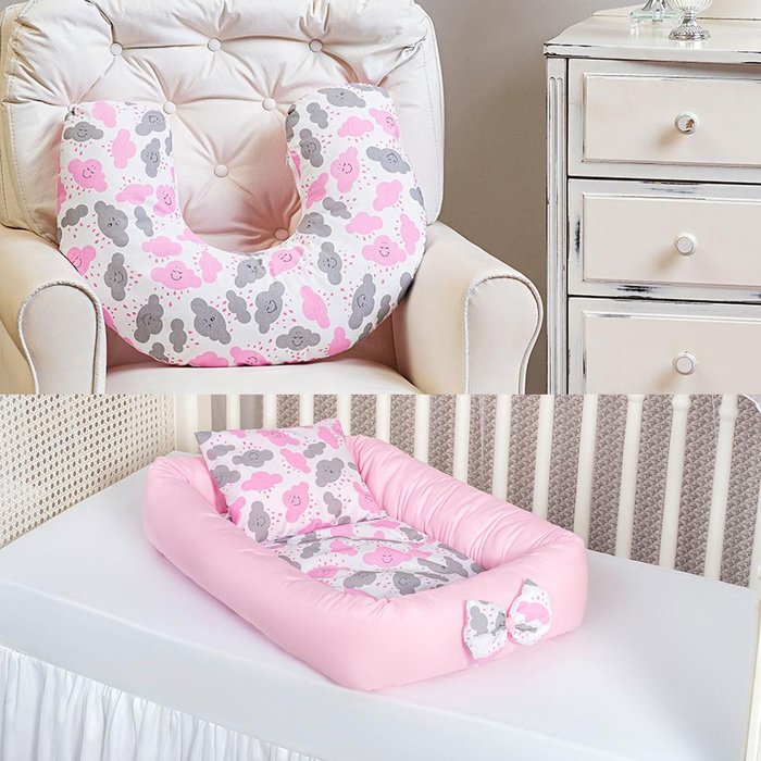 Ninho Redutor Rolinho +almofada Amamentação Nuvem Rosa