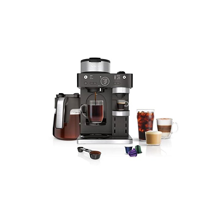 Ninja CFN601 Sistema Barista de Espresso e Café, 3 Estilos de Preparação de Espresso, Compatível com Cápsulas de Café e Nespresso, Jarra de 12 Xícaras, Espumador Integrado, Máquina de Espresso, Cappuccino e Latte - Preto