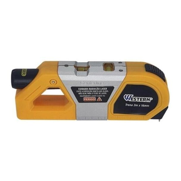 Nivel a laser com trena - 2 em 1 Marca: western Cód.: hl-602 Uso profissional e doméstico Ideal para execução de trabalhos como: - instalar prateleiras - pendurar quadros - colocar portas e janelas - entre outros Projeta uma linha guia reta em qualquer superfície, rápido, prático e sem riscar - dimensões da peça: 15,2 x 6,2 x 2,7 cm - trena de aço com trava - comprimento 3 metros - nível a laser com alcance de 15 metros - possui duas bolhas embutidas - corpo fabricado em abs - utiliza 2 pilhas aaa (não inclusas) - peso 140 gramas (sem as pilhas) Importante: a trena não é a laser, é manual. só o nível que é a laser'