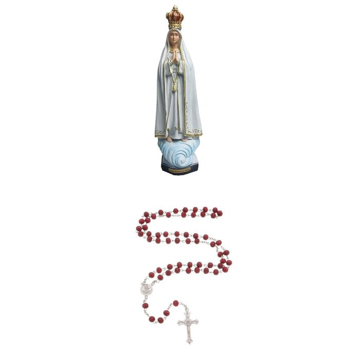 Nossa Senhora Fátima Resina 25cm Terço São Bento Perfumado