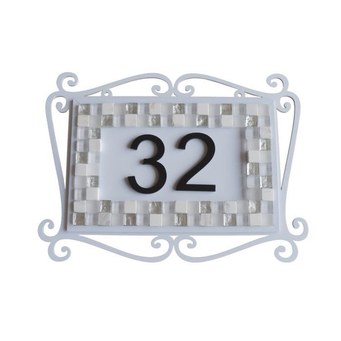 Número para Casa Moldura Arabescos Branca com Pastilhas Claras
