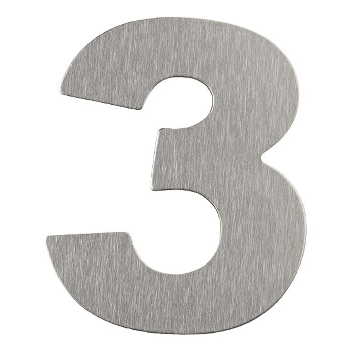 Número Residencial de Alumínio Escovado com Adesivo, 3 (três), Cor Prata, Linha Primafer, Atlas. Prata
