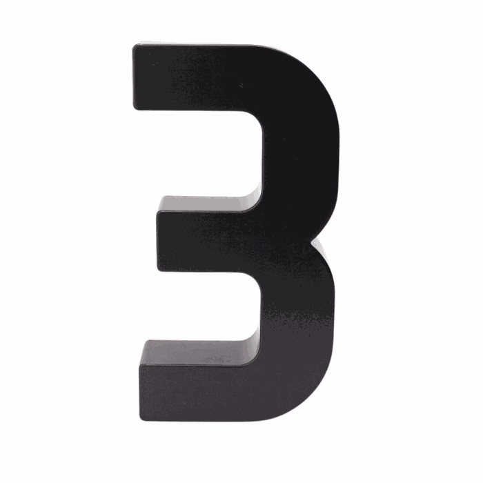 NUMERO RESIDENCIAL PRETO 3 - ROPER PLAST Os números residenciais Roper Plast tem um designe invador, para deixar sua casa ainda mais bonita! Com dimensões de 19x06cm e proteção contra raios UV, ele não amarela e não desbota! Super facil de instalar, com sistema de encaixe, você pode fixar o suporte com bucha e parafuso ou simplesmente com fita dupla face. Disponiveis na cor cromado e preto!