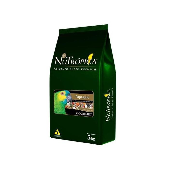Nutrópica® Papagaio Gourmet deve estar sempre à disposição de sua ave. Frutas, verduras e legumes frescos podem ser oferecidos, desde que não ultrapassem 20% do peso total do alimento diário. Água limpa e fresca deve estar sempre disponível. Para garantir um melhor aporte nutricional à sua ave, recomendamos o fornecimento de alimentos extrusados NuTrópica® especialmente formulados para Papagaios, de duas a três vezes por semana.
