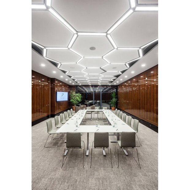 A Nuvem Acústica Hexagonal BL Acoustic 9101 é uma excelente opção para quem busca a funcionalidade do tratamento acústico e estética. O painel é feito em estrutura de MDF com 50mm de espessura, enchimento em lã pet - um produto feito a partir de materiais recicláveis, e acabamento em tecido Lady Creative.