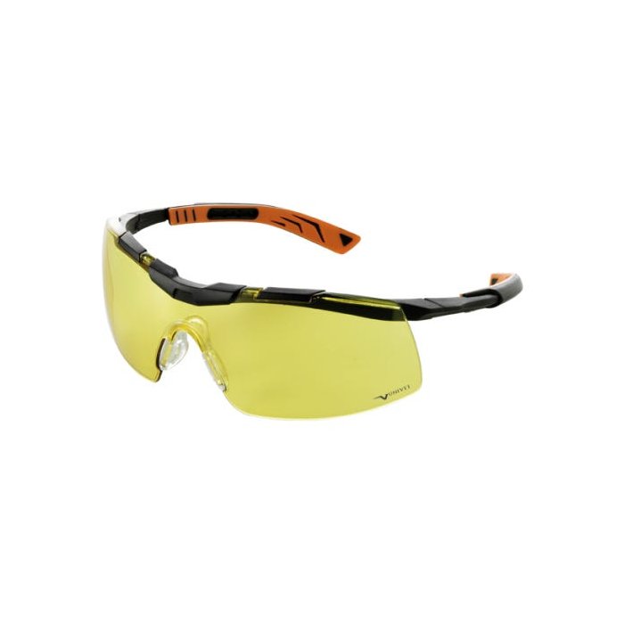 ÓCULOS DE SEGURANÇA, CONSTITUÍDOS DE UM ARCO DE MATERIAL PLÁSTICO PRETO OU CINZA ESCURO, COM HASTES TIPO ESPÁTULA, NAS COR PRETO E LARANJA CONFECCIONADAS DO MESMO MATERIAL DO ARCO E COMPOSTAS DE DUAS PEÇAS: UMA SEMIHASTE COM UM PINO EM UMA DAS EXTREMIDADES E FIXAS AO ARCO POR MEIO DE PARAFUSO METÁLICO E OUTRA SEMI-HASTE VAZADA COM UMA DAS EXTREMIDADES ENCAIXADA NA OUTRA EXTREMIDADE DA SEMI-HASTE ANTERIOR E QUE PERMITE O AJUSTE DO TAMANHO. O ARCO SUPORTA UM VISOR CONFECCIONADO EM POLICARBONATO AMARELO, POR MEIO DE ENCAIXE NA PARTE SUPERIOR EXTERNA DO ARCO. O VISOR POSSUI DOIS PINOS PLÁSTICOS NA ALTURA DO NARIZ PARA ENCAIXE DE UMA PEÇA PLÁSTICA INCOLOR PARA APOIO NASAL.FABRICANTE: UNIVETREFERENCIA E MODELO : 5X6MODELO DA ARMAÇÃO: CURVO COM PROTEÇÃO LATERALCOR DA ARMAÇÃO : PRETO COR DA LENTE : AMARELASDIMENSÕES DOS ÓCULOS: LARGURA : 14CMCOMPRIMENTO DAS HASTES: COM REGULAGEM DE 12 A 13,5 CMALTURA DA LENTES: 5,5MCARACTERÍSTICAS PROTEÇÃO DOS OLHOS DO USUÁRIO CONTRA IMPACTOS DE PARTÍCULAS VOLANTES FRONTAIS E CONTRA LUMINOSIDADE INTENSA FRONTAL.MAIOR VISÃO PERIFÉRICA E MAIOR SEGURANÇA. ENCAIXE PARA LENTE E APOIO NASAL. HASTES COM REGULAGEM MAIOR VISÃO PERIFÉRICA E MAIOR SEGURANÇA. ENCAIXE PARA LENTE E APOIO NASAL. HASTES FLEXÍVEIS. LENTE ÚNICA EM DUROPOLICARBONATO COM TRATAMENTO ANTIRRISCOFILTRA O REFLEXO DOS FARÓIS AMPLIA VISÃO NOTURNAIDEAL PARAAPLICAÇÕES NOTURNASESPORTES E AVENTURASESPORTES AO AR LIVRECICLISMOCORRIDADIRIGIR A NOITEPROJETO UNIVET, DESIGN INOVATIVOHASTES AJUSTÁVEIS COM TECNOLOGIA SOFTPAD*A LINHA X - GENERATION SE DESTACA POR MEIO DA TECNOLOGIA SOFTPAD ATRAVÉS DE MÚLTIPLAS REGULAGENS DAS HASTES POSSUI UM **DESIGN** ÚNICO ALCANÇANDO CONFORTO INÉDITO E ABSOLUTO. O SISTEMA SOFTPAD É UMA SOLUÇÃO PATENTEADA, CONCEBIDA PARA PERMITIR COMPLETA ADAPTABILIDADE, TORNANDO A PLATAFORMA MAIS CÔMODA E ESTÁVEL.CERTIFICADO DE APROVAÇÃO (C.A) -37020