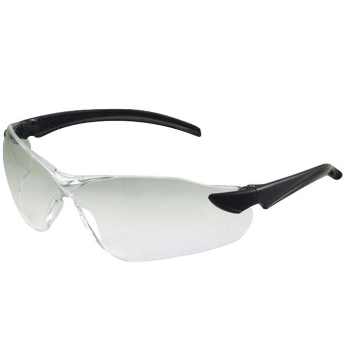 Óculos de segurança constituído de armação e visor confeccionados em uma única peça de policarbonato incolor, incolor com revestimento externo de filme prateado espelhado, amarelo, cinza ou verde, com apoio nasal injetado do mesmo material e hastes tipo espátula.