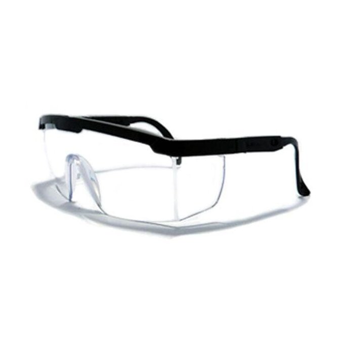 ÓCULOS DE SEGURANÇA JAGUAR KALIPSO constituído de visor confeccionado em policarbonato incolor, fumê ou incolor com meia proteção superior e lateral, apoio nasal confeccionado do mesmo material injetado na mesma peça, hastes de material plástico preto, compostas de duas peças: uma semi-haste vazada com uma das extremidades fixadas ao visor por meio de arrebite metálico e outra semi-haste com um pino plástico em uma das extremidades que se encaixa na outra semi-haste, o que permite ajuste de tamanho.