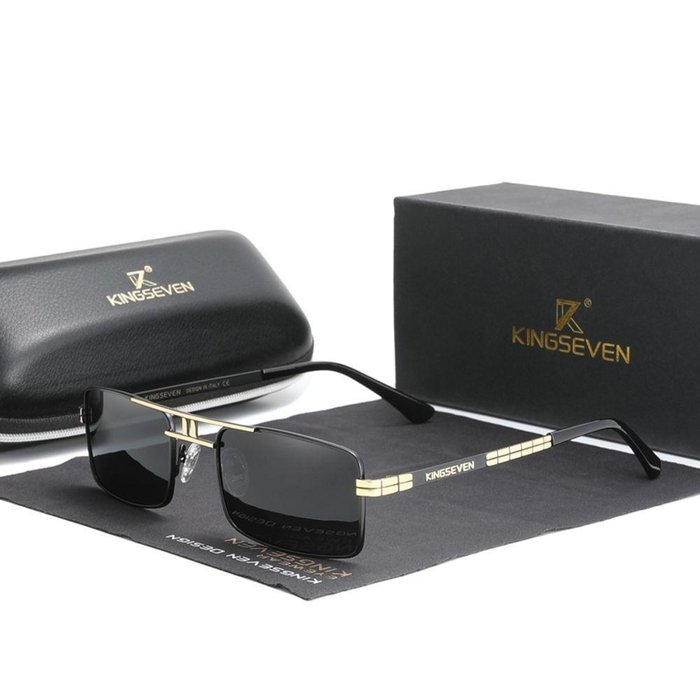 Óculos Polarizados Aço Inoxidável Frame Retângulo Design Dourado