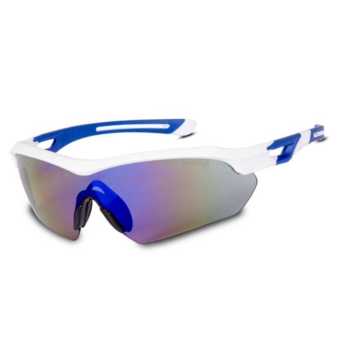 POLICARBONATO E BORRACHA TERMOPLÁSTICA CO-INJETADAS NA COMBINAÇÃO AZUL E BRANCO FABRICANTE: STEELFLEX MODELO: FLORENCE MODELO DA ARMAÇÃO: CURVO COR DA ARMAÇÃO : VERMELHO LENTES: AZUL ESPELHADA LENTES EM POLICARBONATO COM PROTEÇÃO UVTRATAMENTO ANTIEMBAÇANTE E ANTIRRISCOARMAÇÃO EM NÁILON