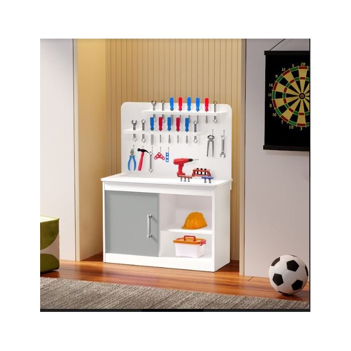Oficina de Brinquedo em MDF Bancada de Ferramentas Cinza Cinza
