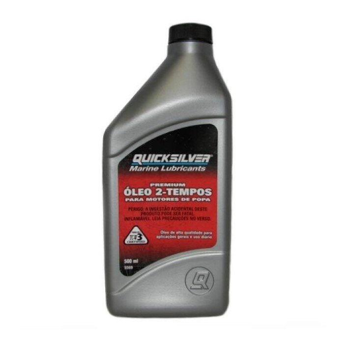 informações do produto Óleo Quicksilver Premium Tc-W3 p/ Motores 2T - 1/2 Litros Proporciona excelente lubrificação para motores de popa 2-tempos e motos aquáticas. Mantém o motor limpo, proporcionando desempenho e eficiência superiores. Atende as recomendações de todos os fabricantes de motores de popa e motos aquáticas que requisitam Tc-Wii ou TCW3 em motores com ou sem injeção de óleo. Contem aditivos contra a carbonização e inibidores de corrosão. Siga a recomendação do fabricante. Possui a certificação Tc-W3 da Nmma. Não se deixar confundir por óleos que apenas alegam "atender" as especificações Tc-W3, isto significa que não é um óleo certificado. Siga a recomendação do fabricante. Leia o rótulo da embalagem do produto antes de utilizá-lo. Preserve o Meio Ambiente. Descarte somente em locais indicados pelo órgão municipal de limpeza pública (conforme resolução do Conama)