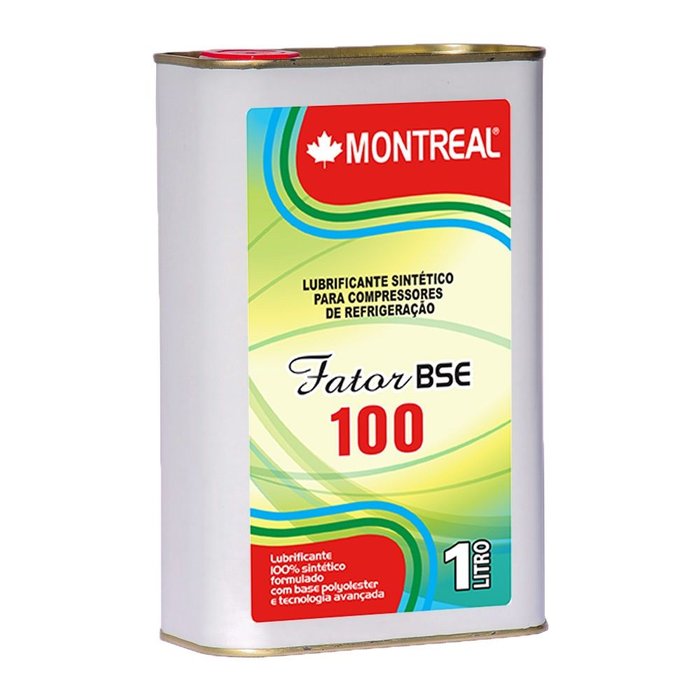 Óleo Montreal BSE 100 1L Lubrificante formulado com bases 100% sintéticas e seleção de aditivos especiais, proporcionando proteção extra e maior vida útil aos equipamentos e partes lubrificadas. A linha Montreal Fator BSE é indicado em sistemas críticos de resfriamento, como baús de refrigeração. Informações Adicionais Montreal Fator BSE foi desenvolvido para compressores semi-herméticos e herméticos, que operam em temperaturas severas, além de turbo-compressores do tipo pistão e parafuso, operando em aplicações comerciais, industriais ou prediais (chillers) e câmaras frigoríficas, com diversos tipos de gases refrigerantes. Este produto pode ser utilizado em sistemas de refrigeração automotivos (baús refrigerados). Não é indicado para utilização em sistemas de ar condicionado automotivos que utilizem lubrificantes de base PAG (Polialquilenoglicol).