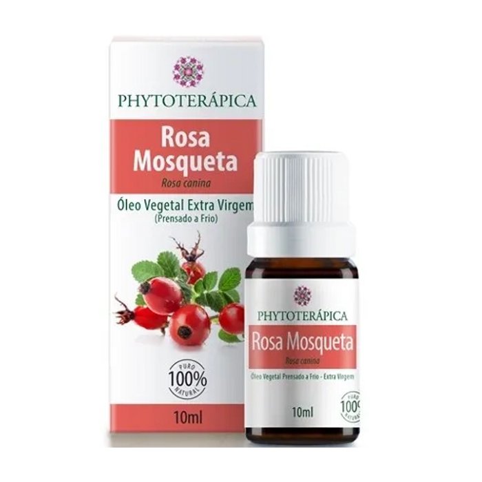 O óleo vegetal de Rosa Mosqueta Phytoterápica é extra virgem, ameniza manchas, marcas e cicatrizes da pele, queloides, olheiras e bolsas nos olhos, rugas e estrias.
