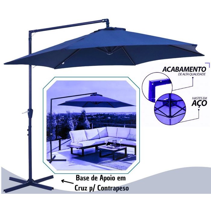 Ombrelone Guarda Sol Lateral Bel Veneza Azul 3 Metros de Diamentro com Base de Apoio em X