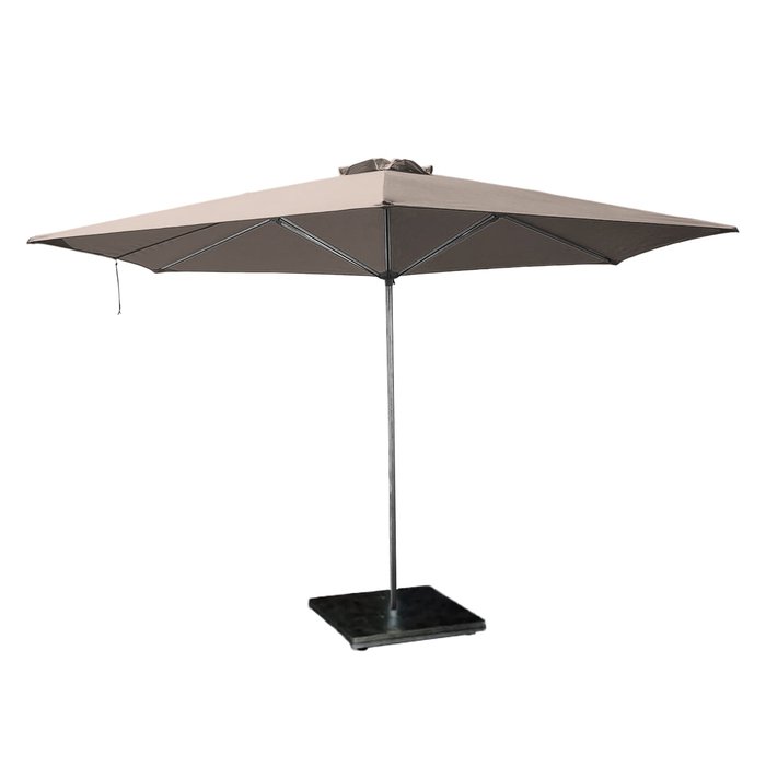 O ombrelone central é ideal para proteger sua pele dos raios solares e aproveitar a sombra na praia, sua piscina, jardim ou mesa e deixar seu ambiente mais sofisticado e charmoso. Aproveite o melhor do sol sem abrir mão da proteção! Tecido lavável e reciclável: quando não utilizado, basta fechar o zíper, mantendo o ombrelone fechado. Para limpeza, pode ser retirado da estrutura, e lavado direto na máquina. Para aumentar a durabilidade do ombrelone, recomendamos fechá-lo quando não estiver em uso, principalmente em situações de fortes chuvas, ventos e tempestades. Este anúncio é com a base. Ela é de pedra ardósia e serve para deixar o ombrelone de pé. Mas também vendemos este mesmo ombrelone sem a base (para colocar na areia ou grama). É feito manualmente, de forma bem leve e fácil. A abertura é feito como se fosse um guarda-chuva, ou seja, empurrando para cima. Para fechar, é só abrir o zíper e empurrar para baixo. O tecido possui uma camada protetora que repele a água e protege também de garoas e chuvas leves. Além disso, protege em até 80% contra os raios u.v., garantindo o seu conforto e bem-estar. Pode haver pequenas diferenças e variações de cores e tonalidades dos tecidos e da estrutura, devido a diferentes configurações dos monitores, diferenças nos lotes dos materiais e até mesmo na digitalização ou fotografia das amostras. Ombrelone sextavado com estrutura fabricada em alumínio anodizado ou pintado e parafusos em aço inox. Tecido importado, olefine 100% poliéster, hidrorrepelente, com alta resistência ao desbotamento, tratamento antimofo, fator de proteção u.v. 80. Os componentes e a estrutura deste produto são muito bem reforçados e de excelente qualidade. Por isso, a durabilidade deste guarda-sol é muito maior do que os outros convencionais. Existem 4 opções de cores: branco, alumínio, marrom e preto. Entraremos em contato para combinar. Caso não seja possível fazer o contato, enviaremos a estrutura na cor de alumínio natural. Modelo:Central/Fator de Proteção Solar:80 U.V./Acompanha Base:Sim