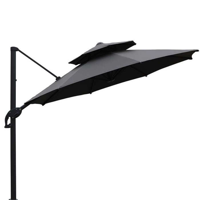 Ombrelone Lateral Belize Rivatti 300 cm em Aluminio com Base Cruz Capa Poliéster Grafite Cinza