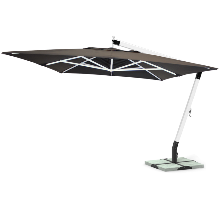 Ombrelone lateral Standard PLUS, apresenta estrutura em alumínio extremamente durável e rígido, além do estilo clássico você encontra exclusividade na manivela e travamento, que proporciona praticidade e maior segurança. Utilizado em todo sistema peças em aço inoxidável e aluminio anodizado, gerando ao ombrelone maior vida útil e elegância.