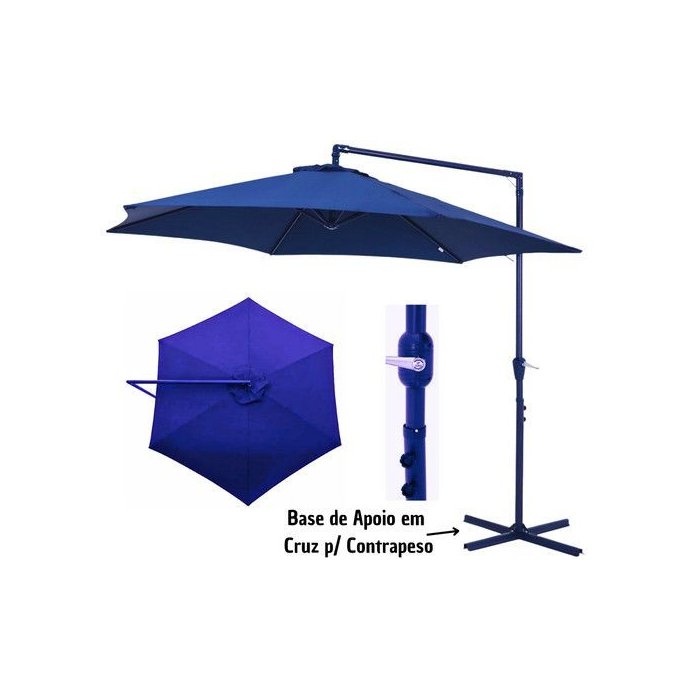 Ombrelone Suspenso Jardim, Praia e Piscina, Guarda Sol Cobertura 3m Poliester Bel Veneza Azul com Ba Azul