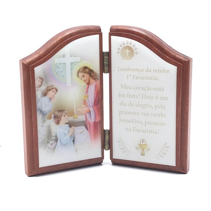 Desenvolvido em material de excelente qualidade que garante mais resistência e durabilidade, a Oração de Mesa Primeira Eucaristia é perfeita para a pessoa que receberá o presente, com toda a certeza ela vai amar essa lembrança