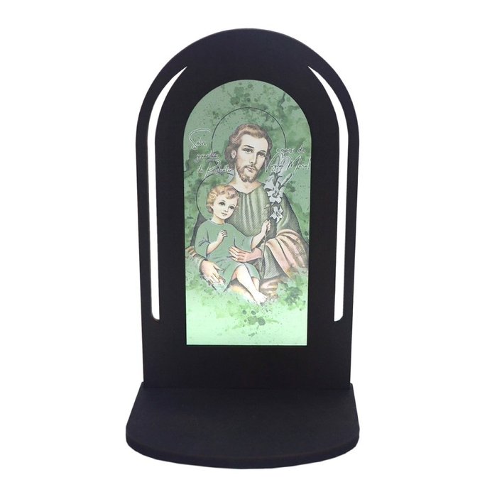 O Oratório São José é feito em MDF, com cristal poliestireno, E.V.A. e adesivo transparente com proteção U.V., na cor tabaco e mede 25 cm de altura. Uma linda peça para decorar a sua casa e expressar a sua devoção a São José.