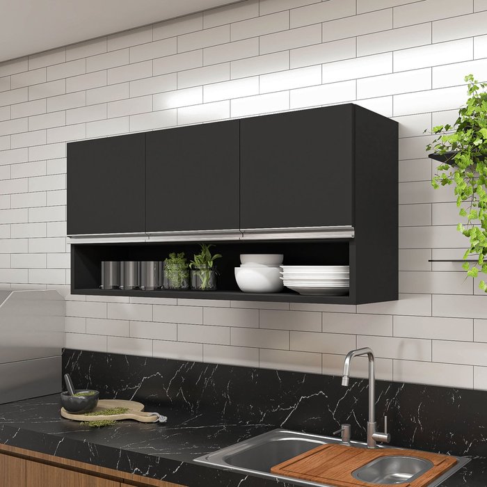 Armário aéreo multiuso, possui um design moderno, sofisticado, com 3 portas que combina com qualquer ambiente, sendo uma peça de decoração para o espaço. Mantendo o hambiente harmonioso e organizado, construído com materiais de alta qualidade, garantindo durabilidade e resistência.