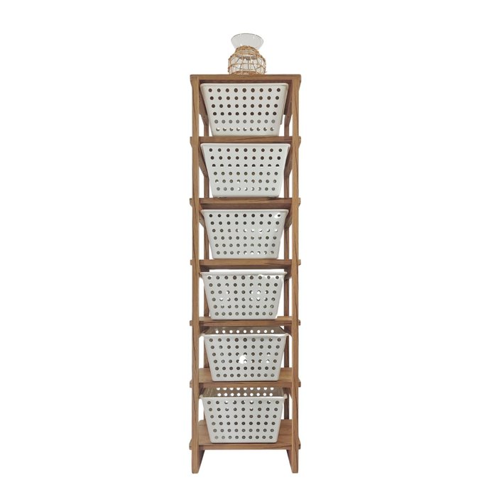 Organizador 6 Cestos Madeirado com Cesto Branco Organizer Madeirado com Cesto Branco
