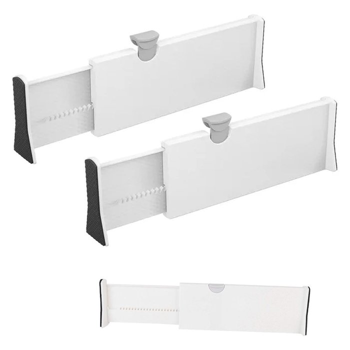 É muito fácil de usar, basta puxar a aba cinza para cima, em segundo lugar, estenda a divisoria para caber na sua gaveta. Por fim, empurre a aba cinza de volta para baixo para travar no lugar.