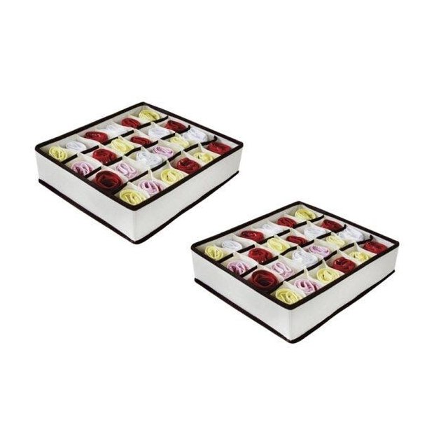 Organizador de Calcinha/ Cuecas/ Meias para Gavetas Organize suas gavetas com mais praticidade. O Organizador de Calcinha para Gavetas é a melhor maneira de guardar suas roupas íntimas e encontrá-las facilmente sempre que você precisar. O organizador é fácil de guardar quando não utilizado, pois possui um zíper na parte inferior que o torna dobrável. É feito em TNT, material que deixa as peças ventilarem e pode ser lavado. As laterais são resistentes fazendo com que ele possa ser empilhado ou colocado em prateleiras. Possui 24 nichos, disponíveis na cor bege. Organize-se e ganhe mais praticidade na sua vida! Características do produto Cada unidade com 24 nichos Possui zíper na parte inferior que o torna dobrável Feito de TNT e laterais resistentes Disponível na cor bege Instruções de Uso 1. Separe o que deseja guardar. 2. Organize as peças nos nichos. 3. Coloque o organizador dentro da gaveta ou na prateleira. Dicas! 1. Guarde também meias, acessórios, lenços e o que mais você precisar. 2. Organize as peças por cor, tipo, ocasião, etc.
