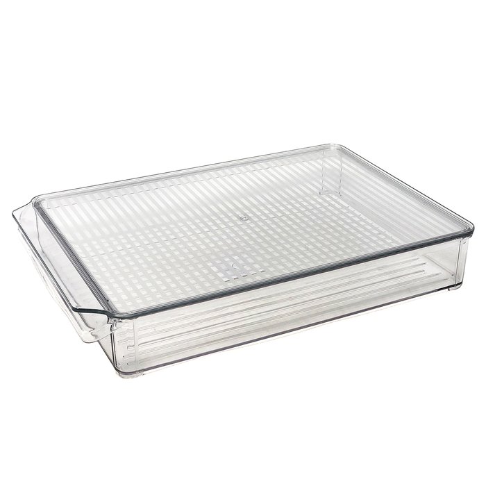 Organizador Geladeira Acrílico C/ Tampa Transp Raso 21x31cm