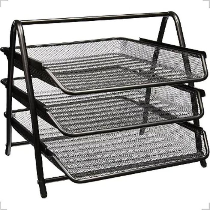 Organizador de Mesa de Escritório com 3 Bandejas de Malha Metálica - GT6575 Descrição do Produto: Mantenha seu ambiente de trabalho sempre em ordem e com estilo com o nosso Organizador de Mesa de Escritório com 3 Bandejas de Malha Metálica. Ideal para escritórios, home offices ou qualquer espaço de trabalho, este organizador é a solução perfeita para quem busca praticidade, durabilidade e um design moderno. Principais Vantagens: Design Moderno e Funcional: Com um visual elegante e contemporâneo, o organizador de mesa se adapta perfeitamente a qualquer ambiente. A estrutura de metal com acabamento fosco adiciona um toque de sofisticação ao seu escritório, enquanto a malha metálica permite visibilidade total dos itens armazenados. Três Bandejas Espaçosas: As três bandejas de malha oferecem amplo espaço para organizar documentos, papéis, pastas, revistas e outros materiais essenciais de escritório. Cada bandeja é facilmente acessível, permitindo que você encontre rapidamente o que precisa. Construção Durável: Feito de metal resistente, o organizador é robusto e durável, garantindo longa vida útil mesmo com uso diário. A estrutura de malha metálica é projetada para suportar o peso dos materiais sem deformar, mantendo sua mesa organizada por muito mais tempo. Maximiza o Espaço da Mesa: O design em camadas do organizador ajuda a maximizar o espaço da sua mesa, mantendo seus itens organizados verticalmente. Isso proporciona um ambiente de trabalho mais limpo e eficiente, permitindo que você aproveite melhor o seu espaço de trabalho. Fácil de Montar e Usar: O organizador de bandejas é fácil de montar e desmontar, sem necessidade de ferramentas adicionais. Sua base estável e antiderrapante mantém o organizador firme sobre a mesa, evitando deslizamentos indesejados. Facilidade de Uso: Com seu design intuitivo, o organizador é extremamente fácil de usar. As bandejas deslizantes facilitam o acesso a documentos e outros itens, enquanto a estrutura de malha aberta garante ventilação e visibilidade, evitando o acúmulo de poeira. Ideal para quem precisa de praticidade e agilidade no dia a dia. Por Que Escolher Nosso Organizador de Mesa de Escritório? Organização Efetiva: Mantenha todos os seus documentos e materiais de escritório organizados e ao seu alcance.