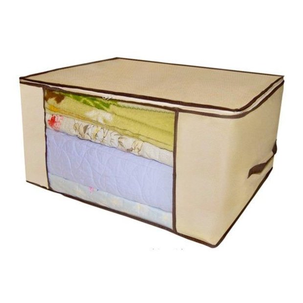 Organizador Multiuso para Closet e Armários com visor transparente, que facilita a visualização do interior Ideal para manter as roupas de cama e toalhas sempre protegidas e prontas para uso É uma das melhores maneiras de ganhar muito mais espaço e ter um guarda-roupa sempre impecável Indispensável para guardar de forma organizada edredon, roupas de lã, cachecol, luvas, gorros, etc, Guarde roupas de outra estação, vestido de noiva, roupas de bebê, travesseiros, etc. Acomoda facilmente embaixo da camaDetalhes do produto: Organizador Multiuso Caixa Organizadora De Guarda Roupa Flexivel Com ZiperNão será mais problema organizar as roupas de cama, cobertores, toalhas, travesseiros entre outros itens da sua residência ou escritório;Objetos que podem perder o valor por estarem expostos ao tempo agora serão guardados longe da poeira e umidade!;Manter o quarto dos filhos será muito mais fácil: roupas, brinquedos, material escolar ou até mesmo roupas sujas poderão ser colocados nos Organizadores;Organiza e mantem protegido de poeira;Confecionado em TNT e PVC, permite que as peças respirem, evitando mofo;Com janela frontal para visualisar o que guardou;TAMANHO:60cm X 45 cm X 30cmCOMPOSIÇÂO:TNT BegePVC TransparentePeso: 750gFabricado por: VB Home3 meses garantia para defeito fabricaçãoContém1 unidade por embalagem