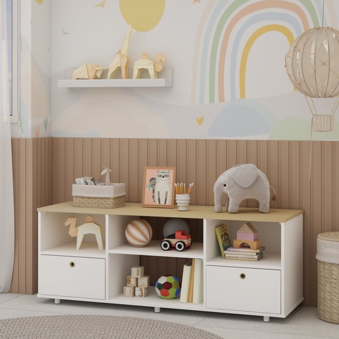 Organizador para Quarto Infantil com 2 Gavetas Montagem Simplificada sem Uso de Ferramentas Branco/Savana