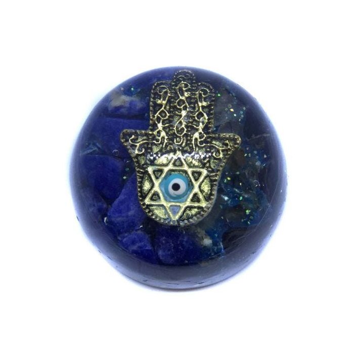 Orgonite Mão de Hamsá Sodalita e Ônix Limalha de Alumínio