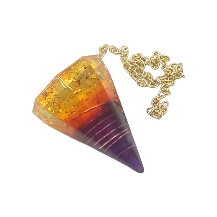 Poderoso pêndulo de orgonite serve como mostrador do inconsciente do operador, fazendo a comunicação do consciente com o inconsciente. Orgonite é um dispositivo que acumula a energia que está ao seu redor e a transforma em energia positiva, beneficiando tudo e todos a sua volta. Ele é geralmente utilizado para harmonizar e melhorar a energia dos ambientes, principalmente para proteger contra a poluição eletromagnética (colocando-o em cima de televisão ou perto de torre de celular por exemplo). Ou para meditações, energização de alimentos ou Plantas.