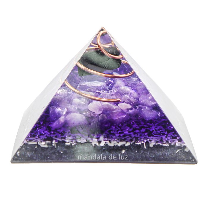 Orgonite Pirâmide Transmutação e Proteção - Ametista e Turmalina Negra