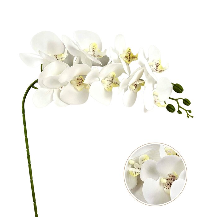 Dê vida à sua decoração com a beleza atemporal das hastes de orquídea artificial da Inigual Decor. Criadas meticulosamente para imitar a exuberância da natureza, nossas hastes oferecem uma solução elegante e duradoura para transformar qualquer ambiente.
