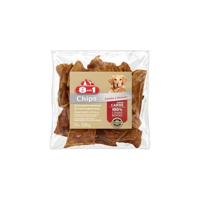 Não existe melhor fomar de demonstrar carinho pelo seu cão do que um delicioso e saboroso petisco, o Osso Para Cachorro Petisco 8in1 Chips Carne é rico em proteína e produzido 100% em couro natural e sobre rigorosas normas globais de segurança alimentar. Saúdavel e delicioso ajuda a satisfazer a necessidade de mastigar do cão.