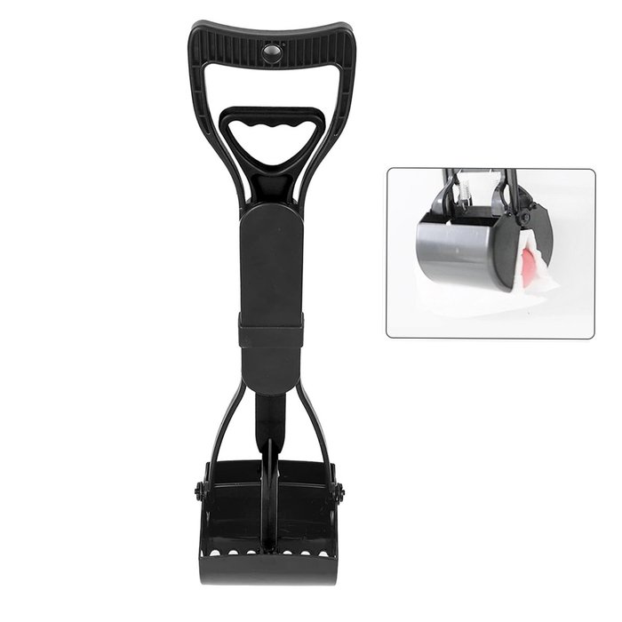 Pa Coletora Coco Fezes Cachorro Cao Gato Pet Grama Sujeira Cascalho Dobravel Alça Longa Resistente D Preto