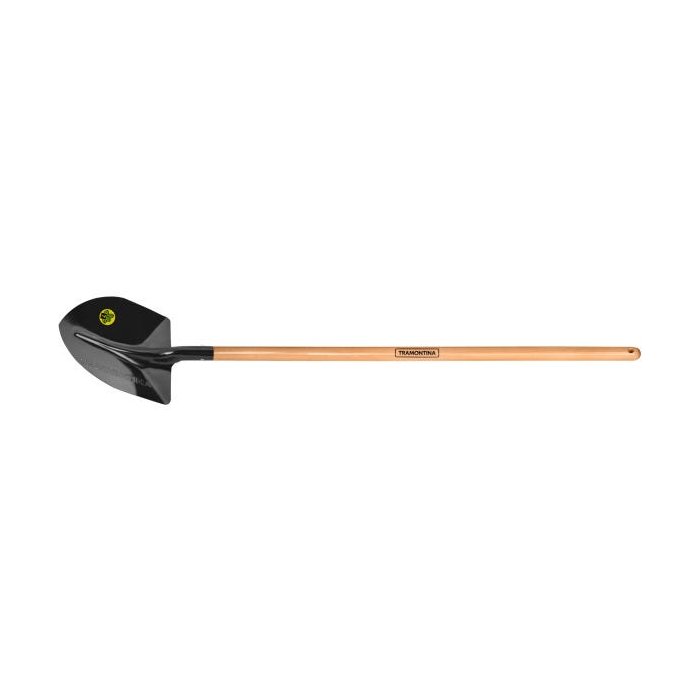 A pá é fabricada em aço carbono especial de alta qualidade, cortada a laser. É temperada em todo o corpo da peça, proporcionando maior resistência e menor desgaste durante o uso. Recebe pintura eletrostática a pó, que tem uma melhor apresentação visual e maior proteção contra oxidação. O cabo de 120 cm desta ferramenta, além de possuir ótima resistência, é produzido com madeira de origem renovável. Cabo com acabamento envernizado, para um melhor acabamento e apresentação do produto. A camada protetora em verniz incolor realça sua tonalidade, concedendo brilho e um toque mais liso ao produto. Pá leve, que gera menos esforço físico do usuário e proporciona maior produtividade.