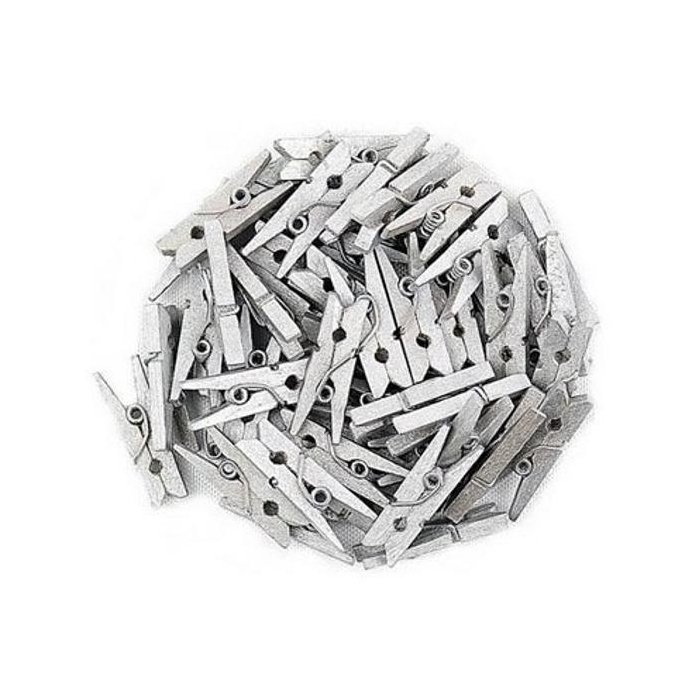 Pacote 100 Mini Prendedores em Madeira 25 Mm - Prata Prata