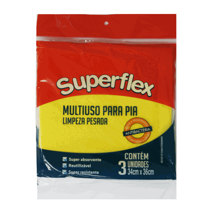 Produzido com tecnologia para garantir alta absorção e não reter odores, o Multiuso Limpeza Superflex é ideal para limpeza versátil e eficiente de cozinhas, banheiros, vidros e outras superfícies. São protegidos contra a proliferação de fungos e bactérias, possuem alta absorção, são reutilizáveis, resistentes e fáceis de lavar.