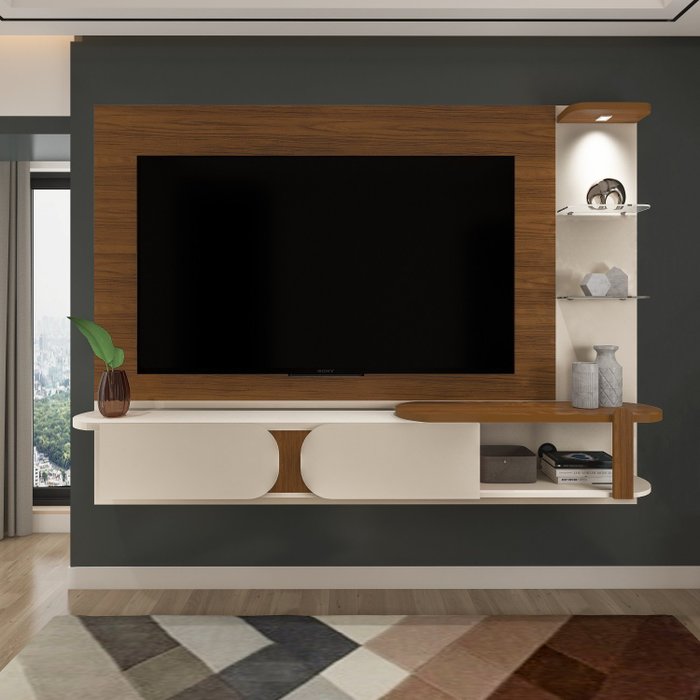 Painel 2,0 Mt com Suporte para Tv até 72 Polegadas Magic Cedro/Off White