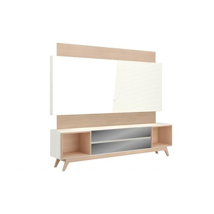 Painel 220cm + Rack com 2 Gavetas Espelhadas - Dalla Costa - Off White/Natural