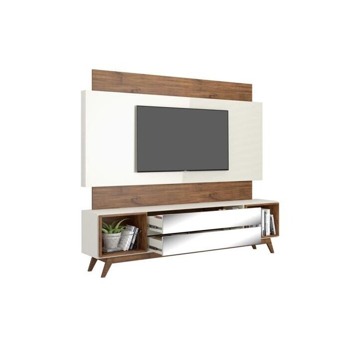 Painel 220cm + Rack com 2 Gavetas Espelhadas - Dalla Costa - Off White/Nobre