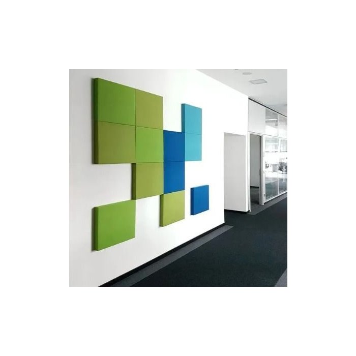 A placa é feita em MDF de 25 mm de espessura, enchimento em lã pet de densidade igual a 20Kg/m3, e acabamento em tecido Poliéster.