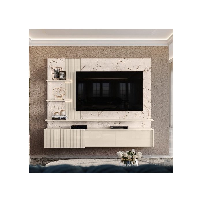 Painel Atena para TV de até 65 polegadas - CALACATA / OFF WHITE - Madetec